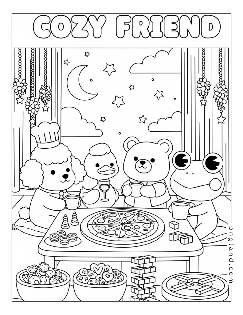 Cozy friends coloring pages free printable ideas you can use right now