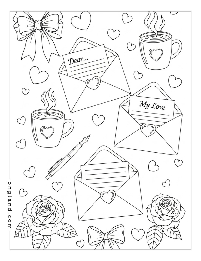 Below are 50 ideas for cozy love themes you can color. Some are romantic. Some are more like “soft friendship love” or “family love.” And some are just cute things with hearts everywhere, which is honestly fine.