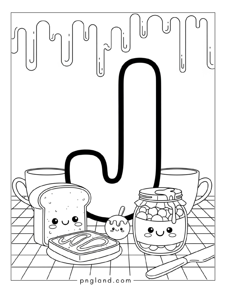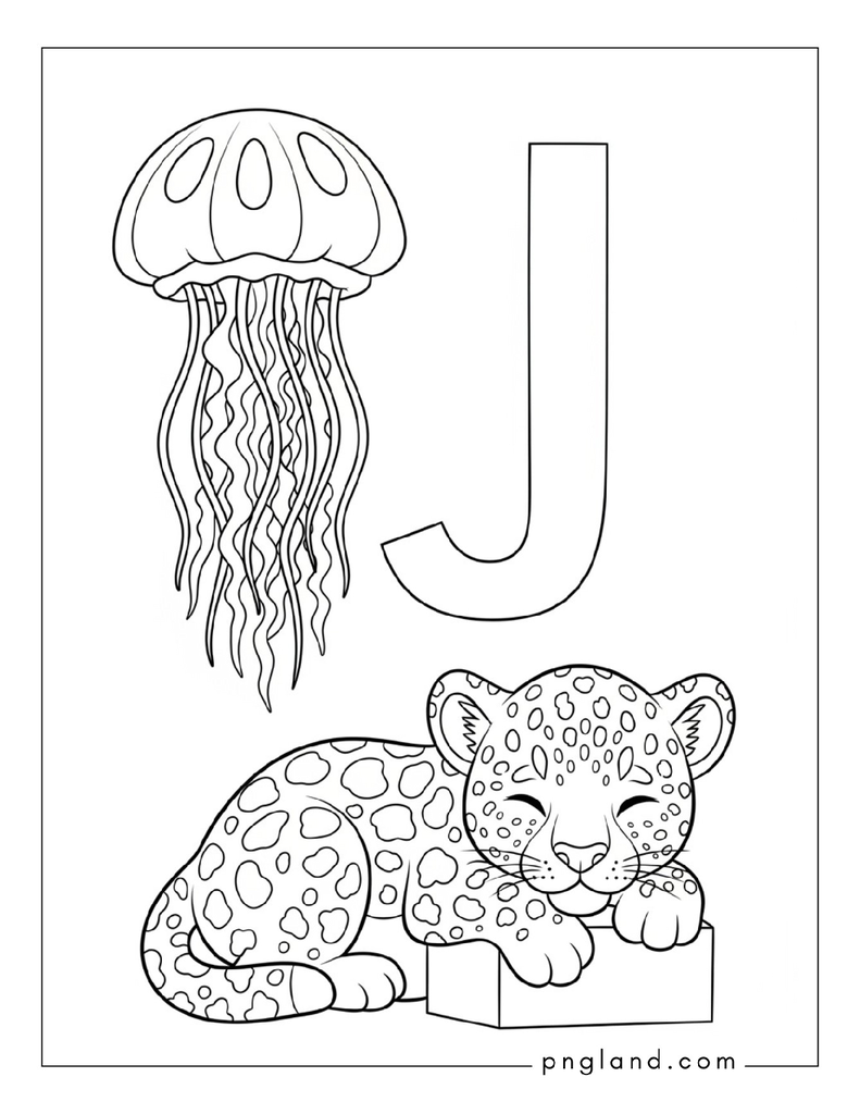 I tried to make this list really useful, not fancy. Some ideas are for toddlers (big shapes, thick lines). Some are for older kids who like more details. You can also mix ideas together, like “J is for Jaguar” plus a jungle background, or a patterned letter J with jellybeans inside.