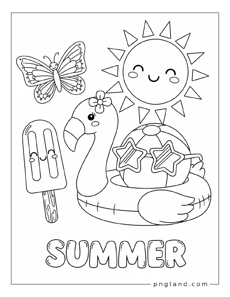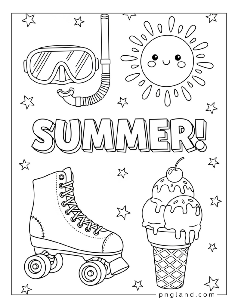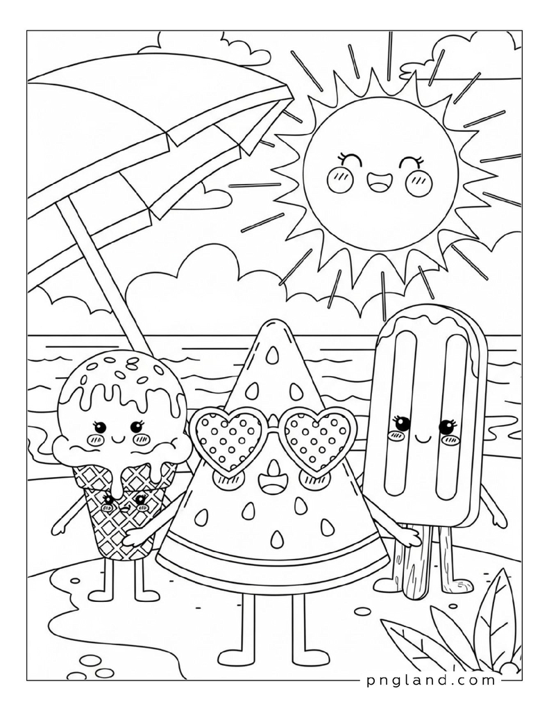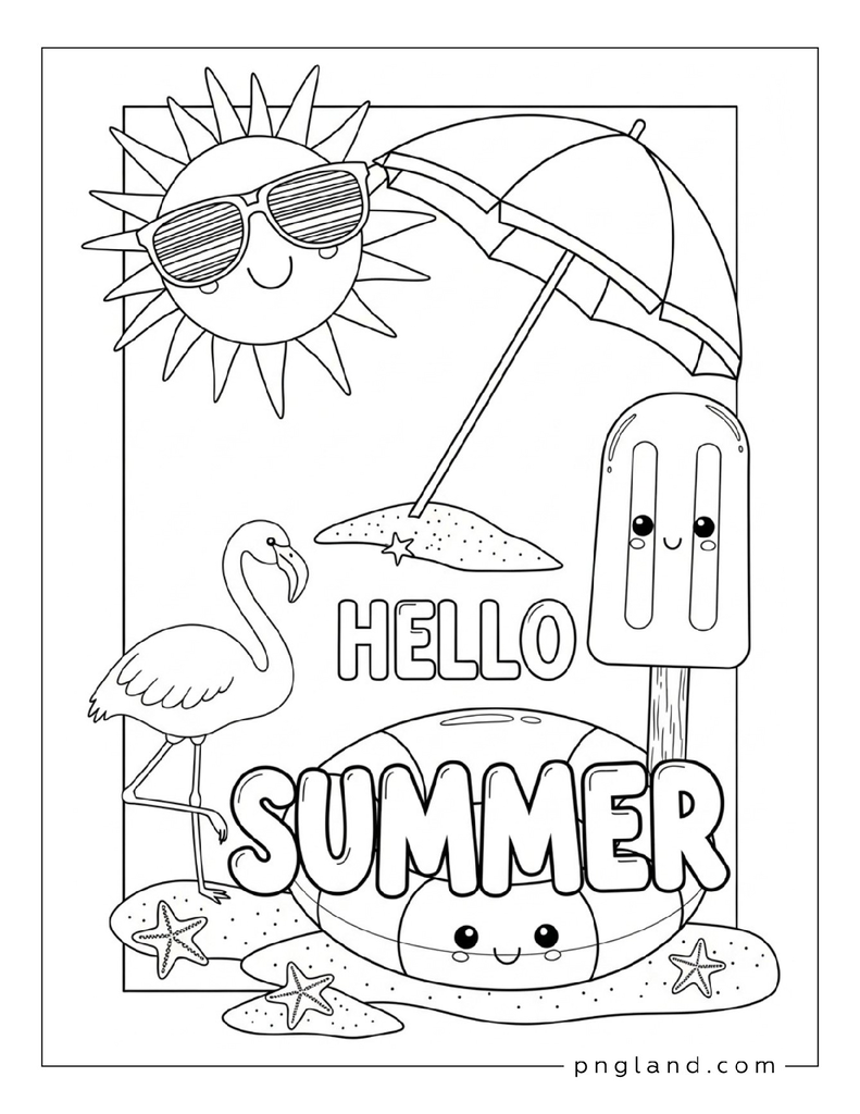 Here’s the big list: 73 ideas for summer coloring themes. Some are super simple. Some got more detail. You can pick what matches your mood (or your kid’s mood, which changes every 5 minutes, lol).